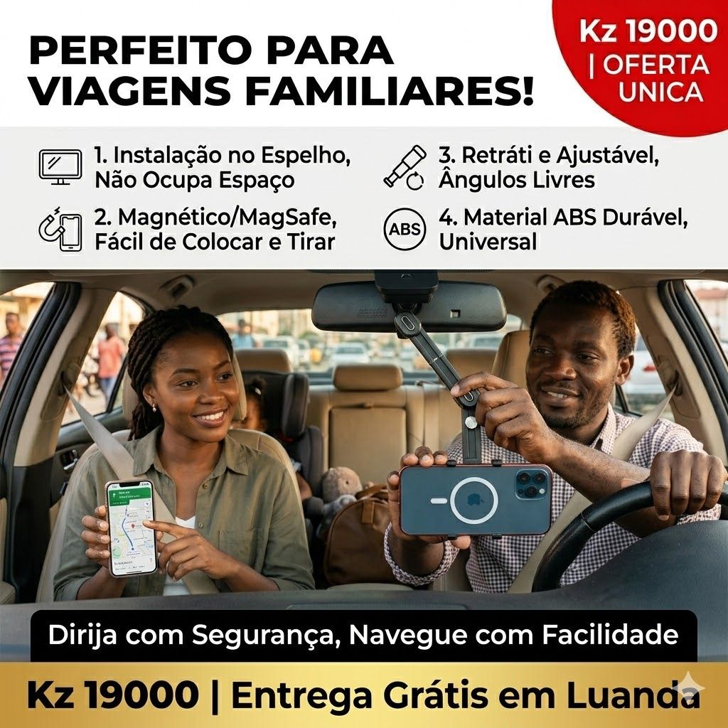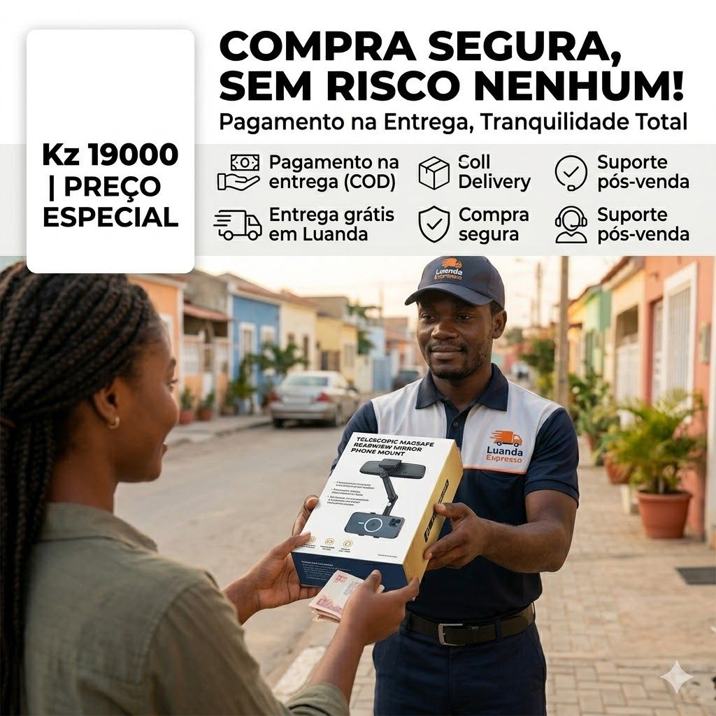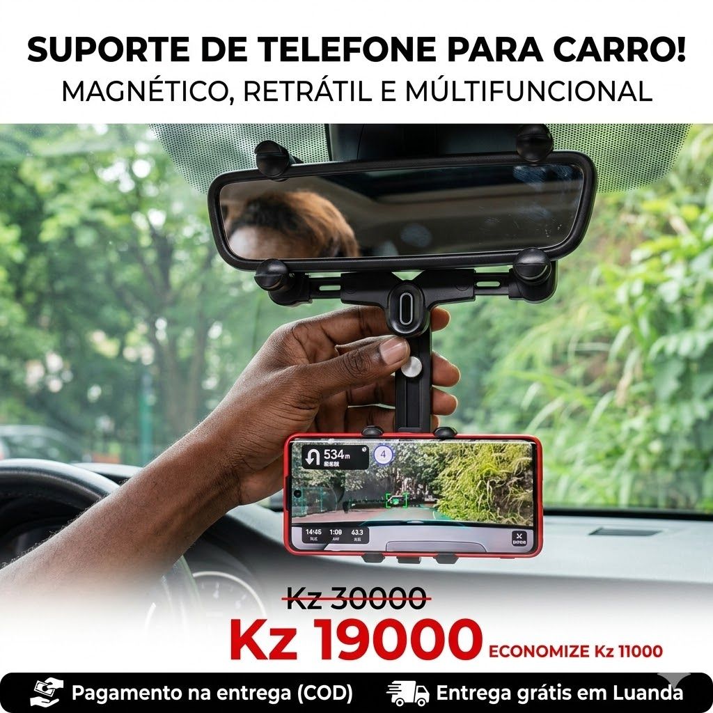 ✅ 📱 UNIVERSAL PARA TODOS OS CELULARES E CARROS!Funciona com iPhone, Samsung, Xiaomi, Tecno, Itel, OPPO, vivo — TODOS OS CELULARES!Serve em retrovisores de carros, SUVs, caminhonetes — TODOS OS VEÍCULOS que você dirige em Angola!