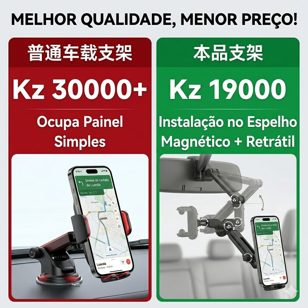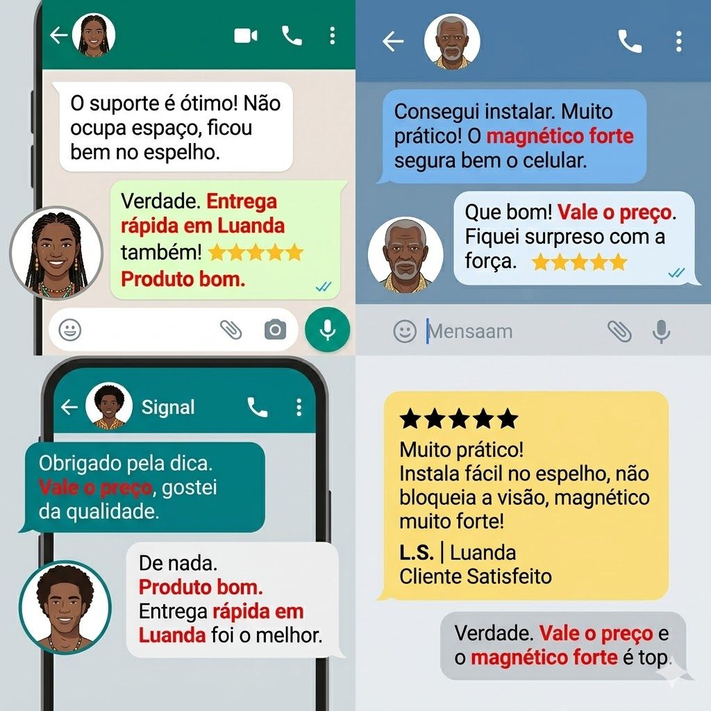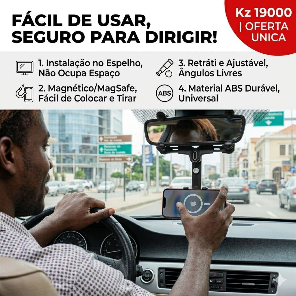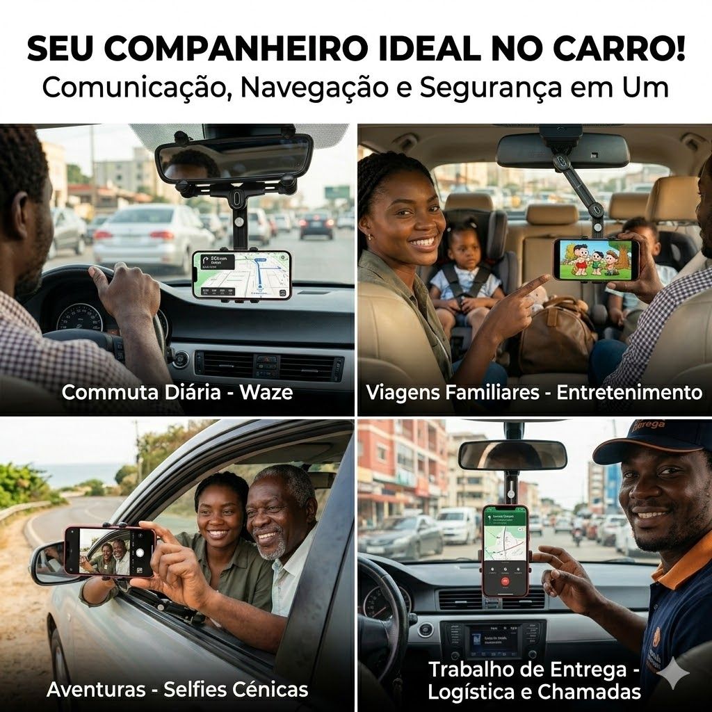 ✅ 📱 UNIVERSAL PARA TODOS OS CELULARES E CARROS!Funciona com iPhone, Samsung, Xiaomi, Tecno, Itel, OPPO, vivo — TODOS OS CELULARES!Serve em retrovisores de carros, SUVs, caminhonetes — TODOS OS VEÍCULOS que você dirige em Angola!
