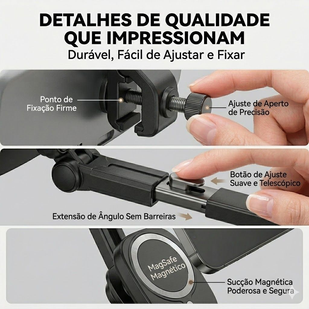 - Braço ajustável que estende e encurta conforme sua necessidade 📏